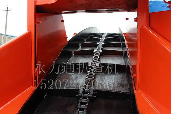 10、鏈條刮板式輸送系統(tǒng)經久耐用,無需經常維護。鏈條刮板式輸送系統(tǒng)的使用壽命遠高于皮帶式輸送系統(tǒng)。無需象皮帶式扒渣機那樣頻繁更換托輥、皮帶。提高了設備的出勤率。