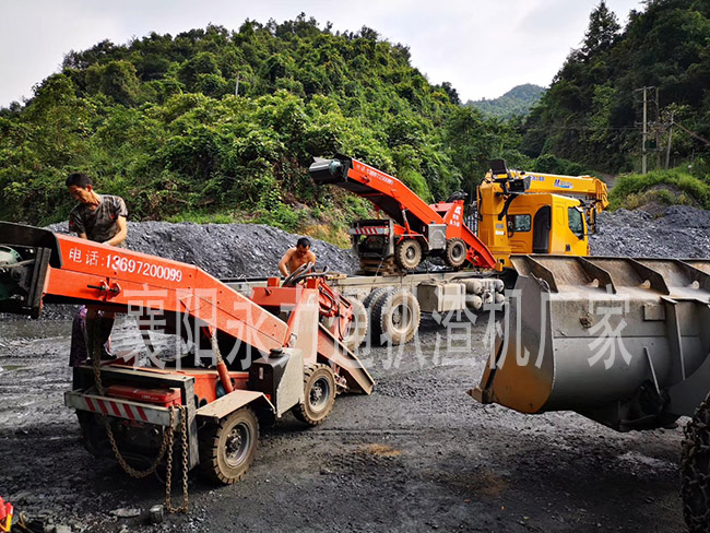 羅總的工地是2米寬2米高的隧洞,平巷沒(méi)有坡度,拐彎也不是很急,用的是時(shí)風(fēng)三輪車配合出渣,廠家推薦其使用60型輪式皮帶扒渣機(jī),羅總要求一臺(tái)帶柴油機(jī),另一臺(tái)不帶柴油機(jī)。